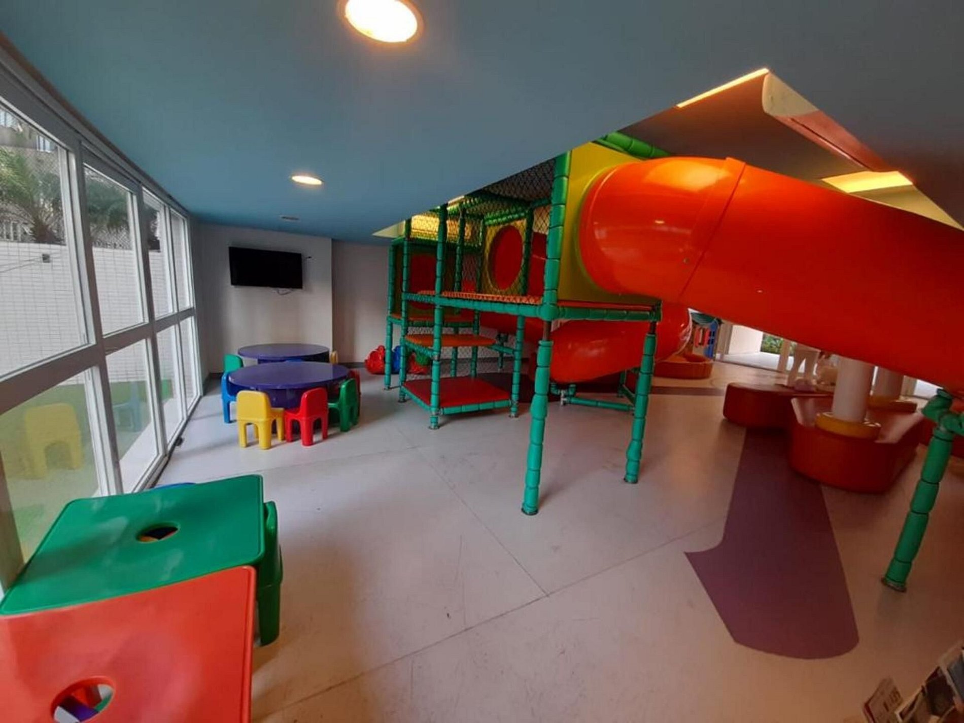Oferecemos uma vaga de garagem coberta gratuita. O apartamento é telado, garantindo segurança, especialmente para crianças, que são muito bem-vindas, porém precisam de supervisão constante, principalmente na área de lazer.