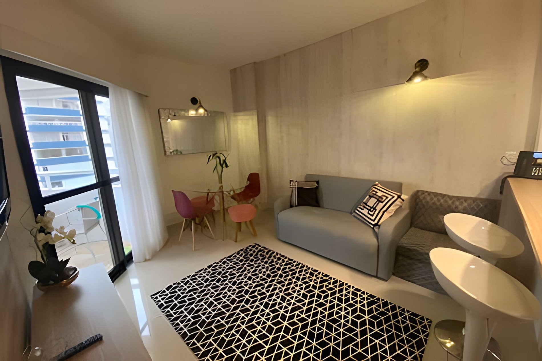 O edifício está no melhor e mais seguro bairro, com portaria 24h, check-in facilitado, piscina e academia. Há também lavanderia self-service no condomínio (Bubble Box), paga à parte.