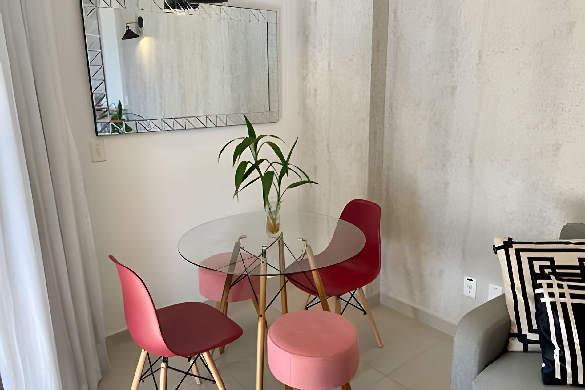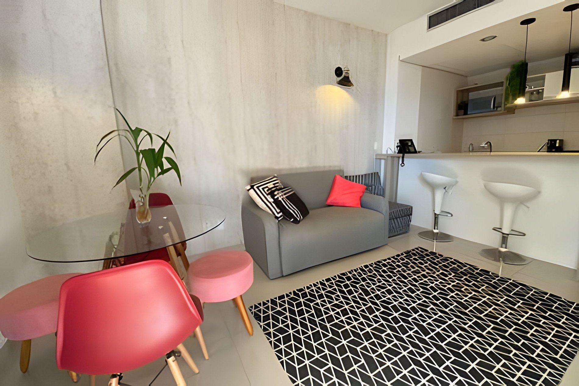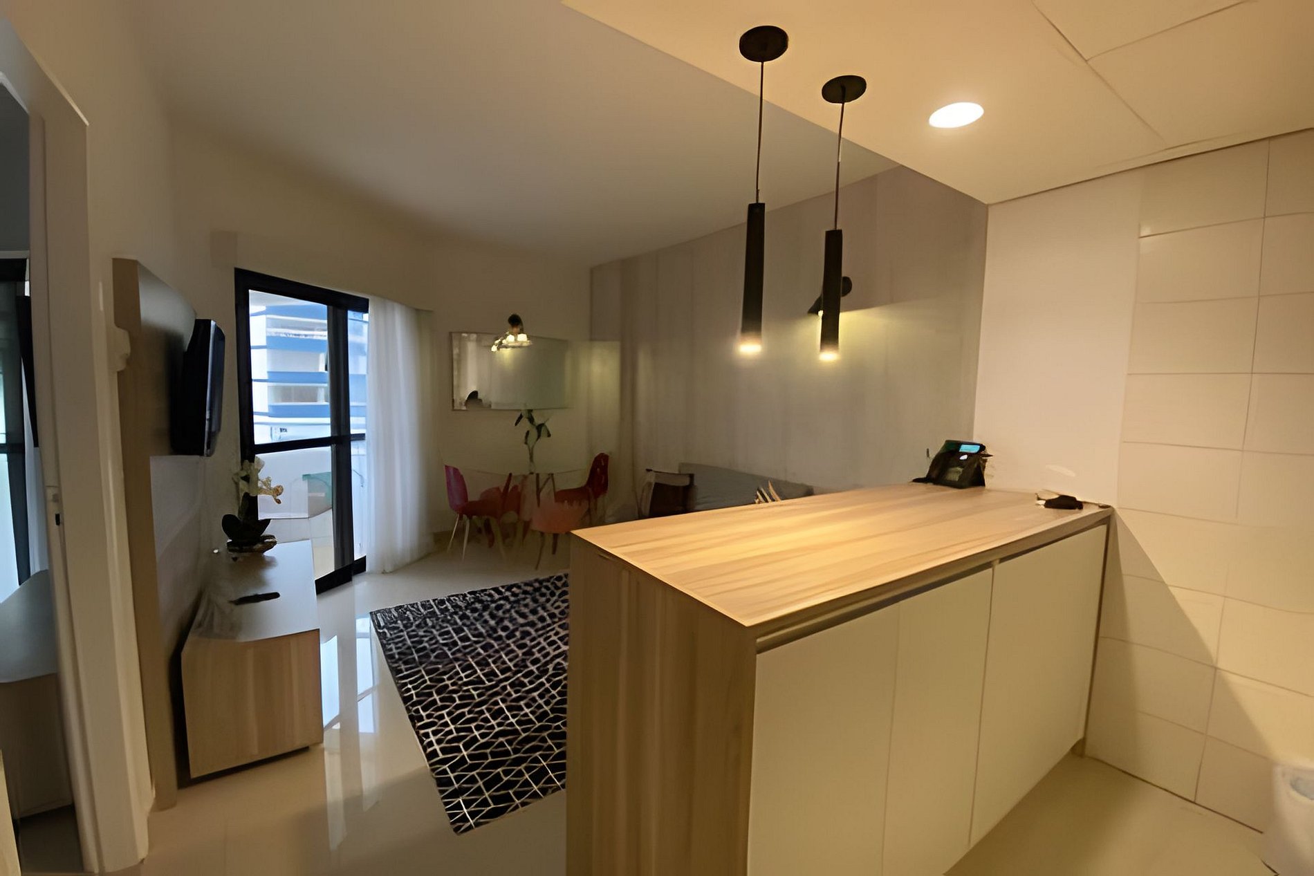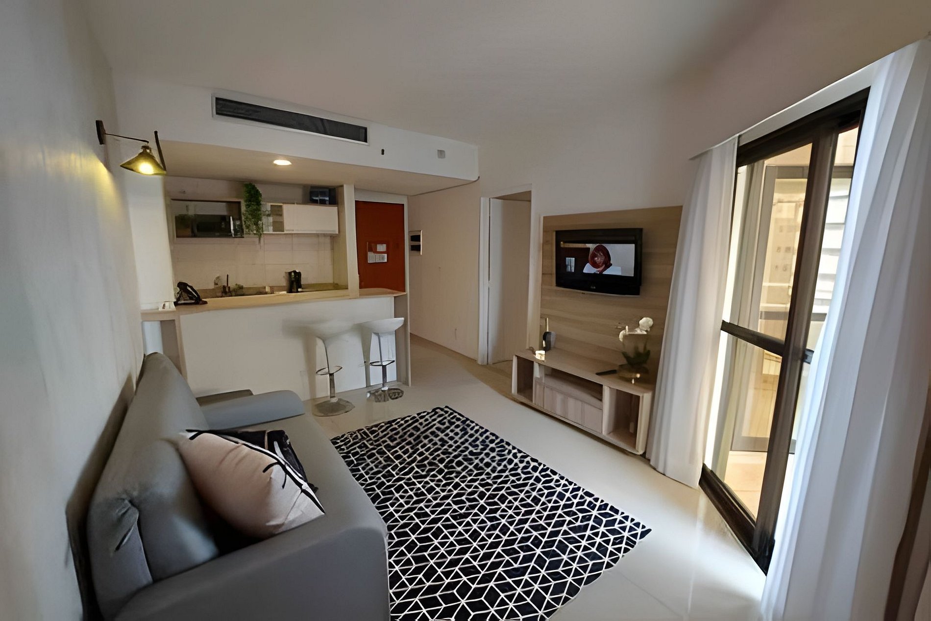 Conta com suíte com cama king size, ducha a gás Deka, ar-condicionado no quarto e na sala. Acomoda até 4 pessoas — idealmente 2 adultos e 2 crianças.