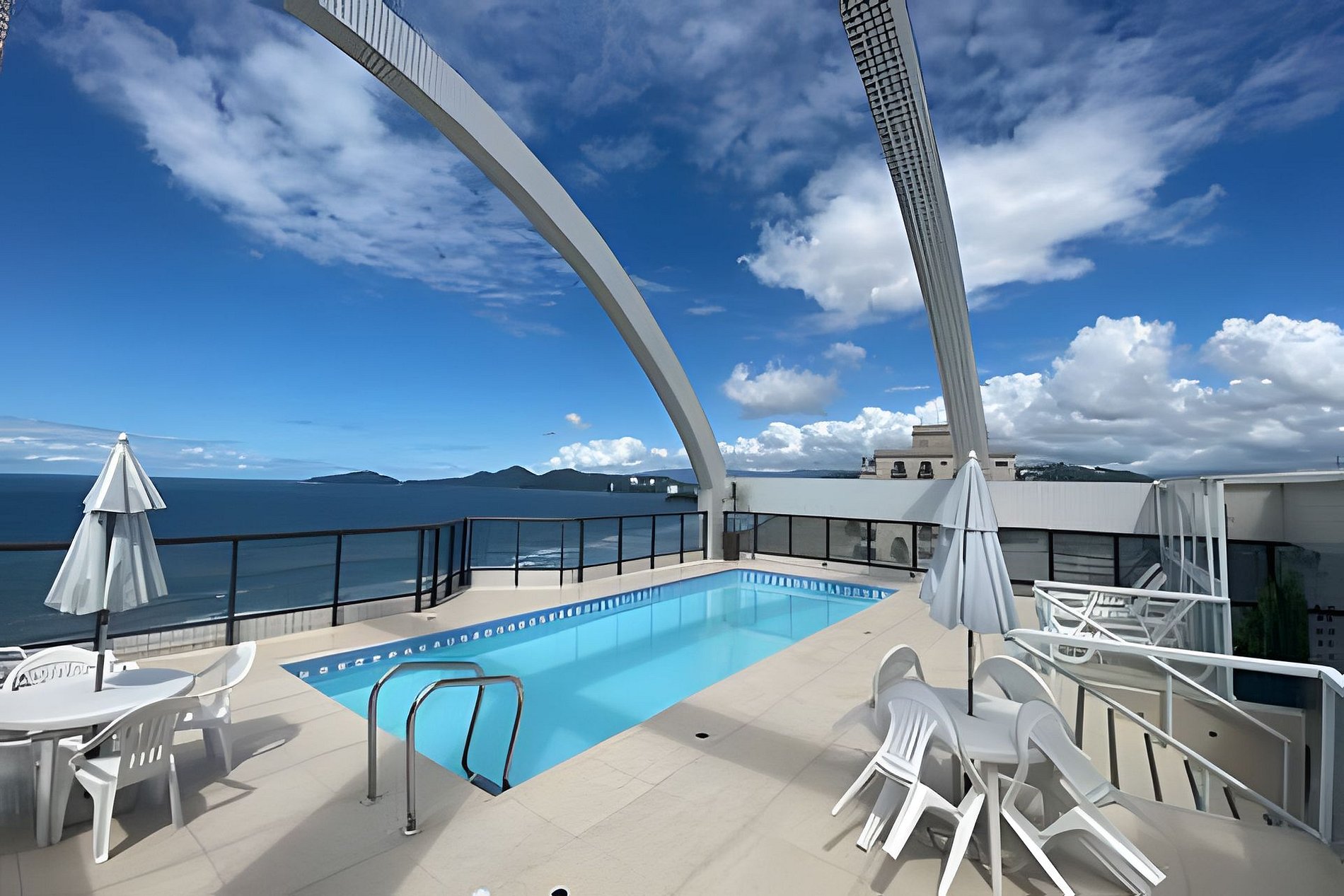 O condomínio oferece Wi-Fi, serviço de limpeza, piscina, academia com vista panorâmica e barraca de praia aos finais de semana.