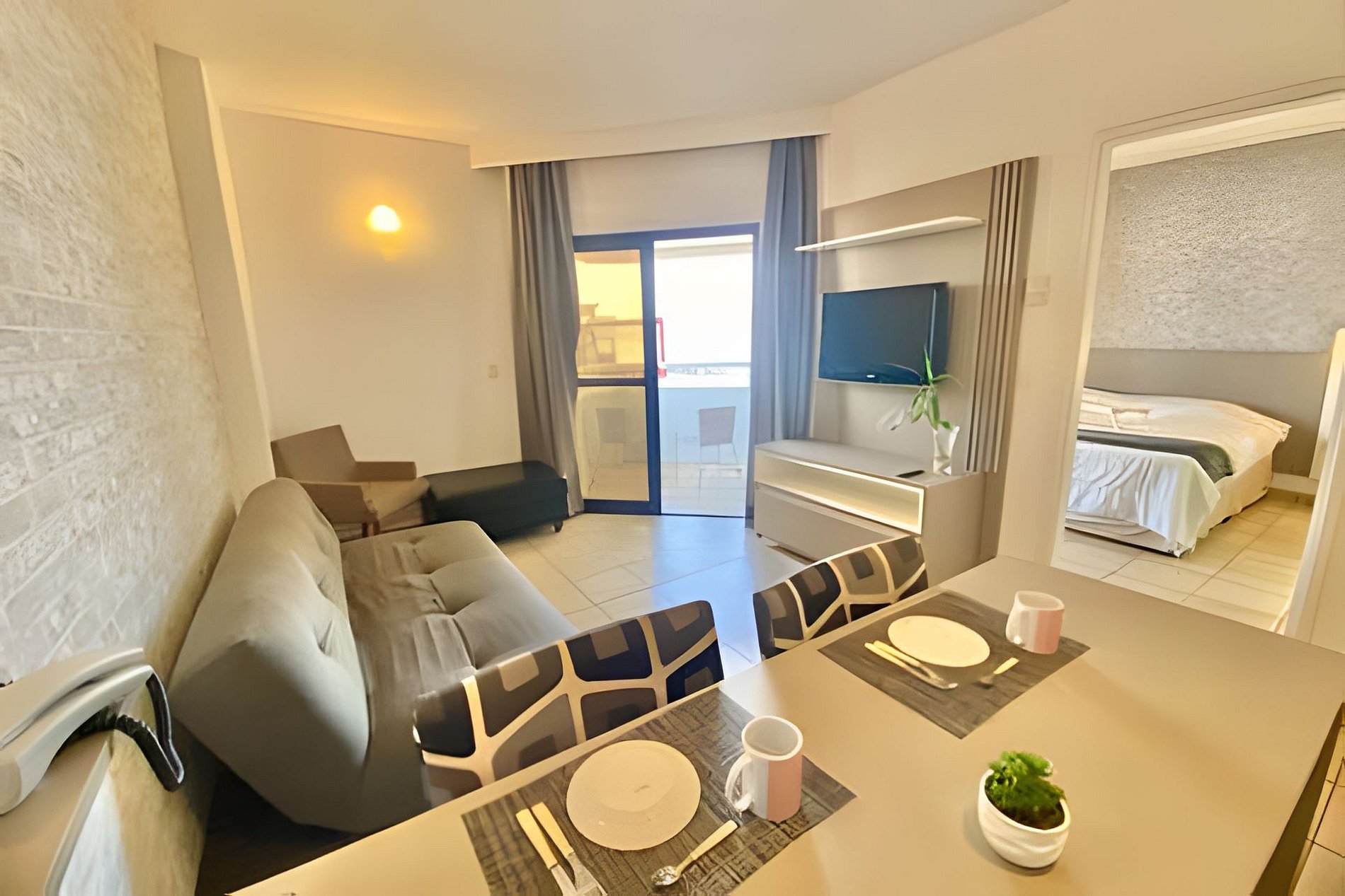 Os hóspedes terão acesso exclusivo a todo o apartamento, que conta com um dormitório (suíte) mobiliado com cama King e uma sala com sofá-cama. A propriedade também dispõe de uma agradável sacada com linda vista para o mar. A cozinha está equipada com frigobar, cooktop de indução de 2 bocas, panelas de indução, micro-ondas, cafeteira, louças e talheres.