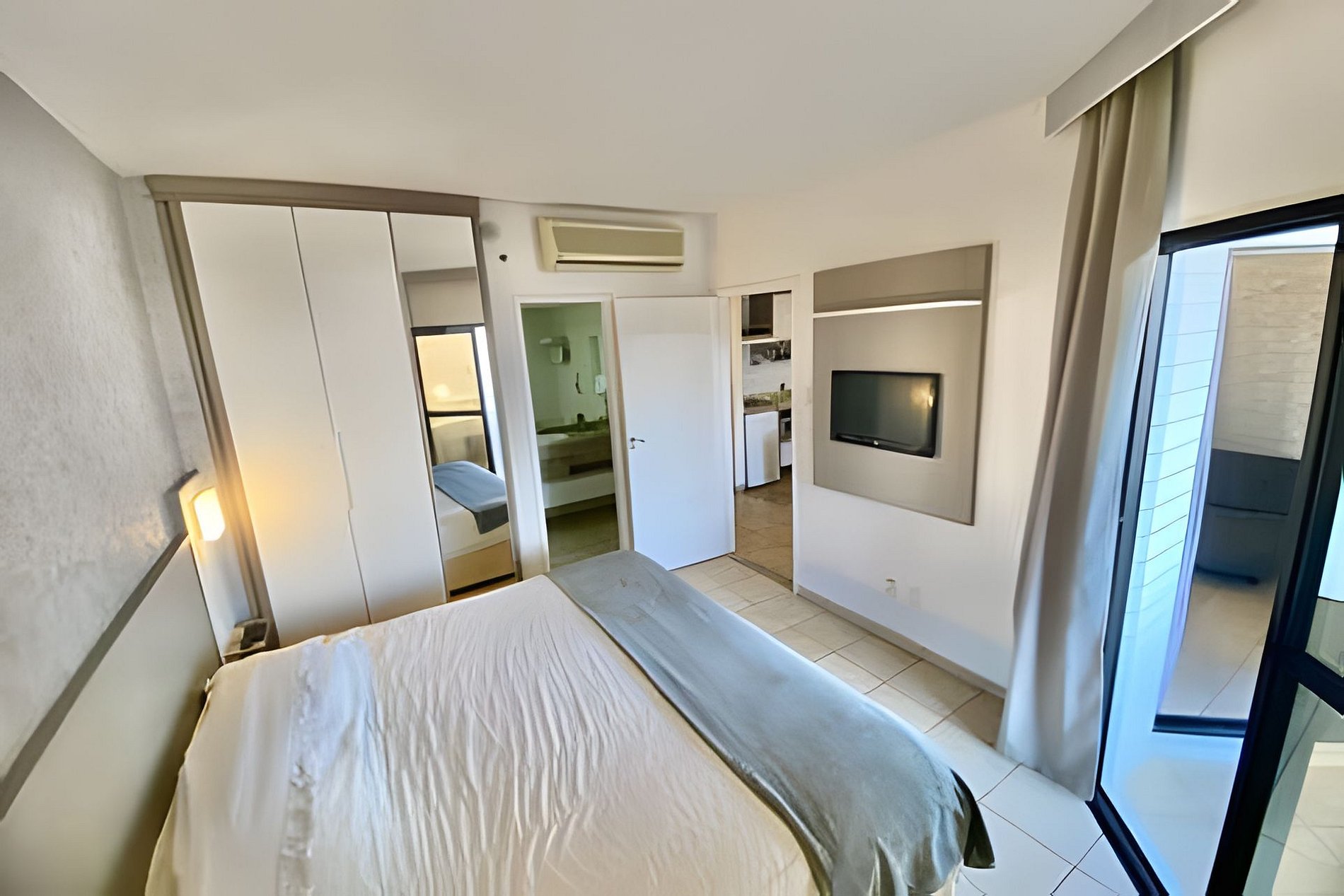 Sala com TV a cabo e quarto com TV aberta e Chromecast. Portaria 24h, piscina e academia.