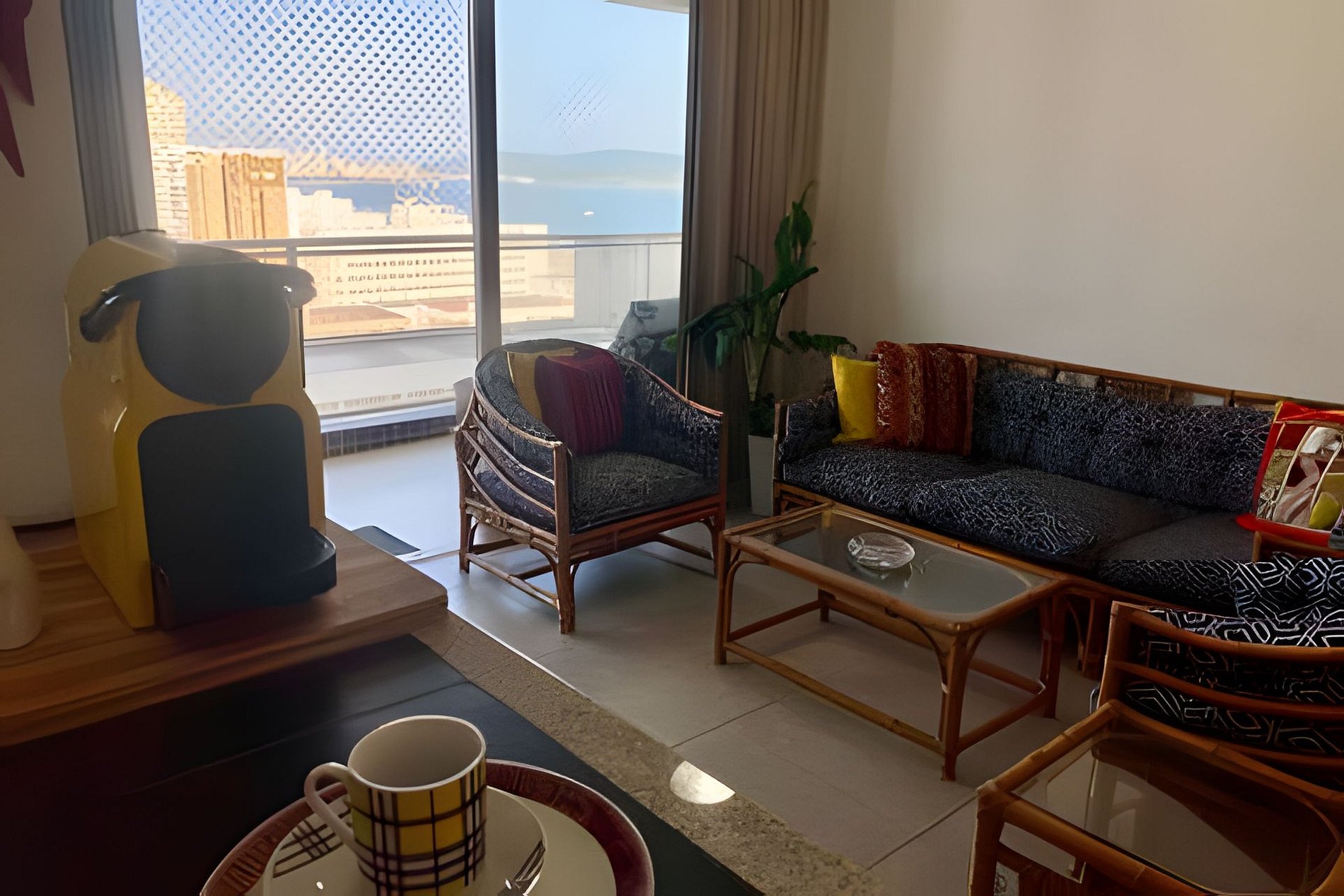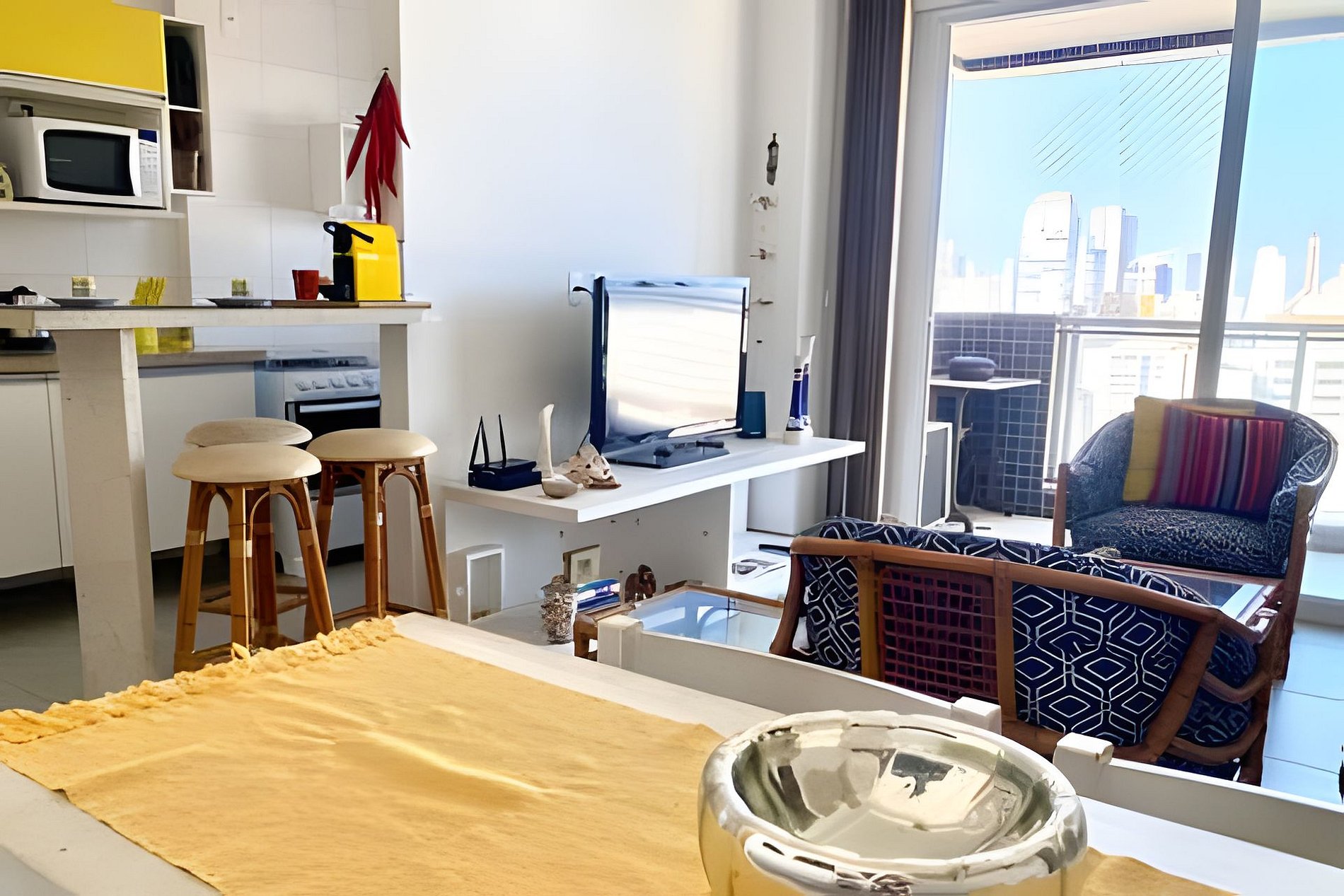 A cozinha está equipada para uma experiência gourmet, incluindo cafeteira Nespresso (traga suas cápsulas).