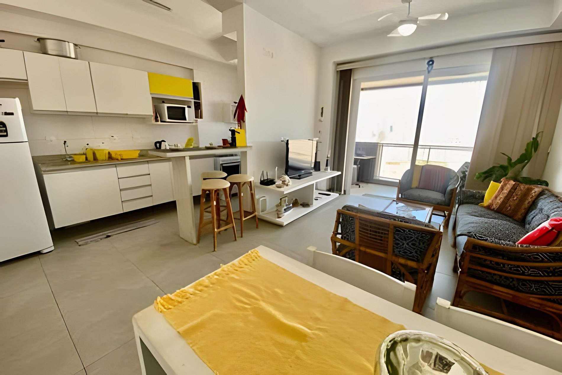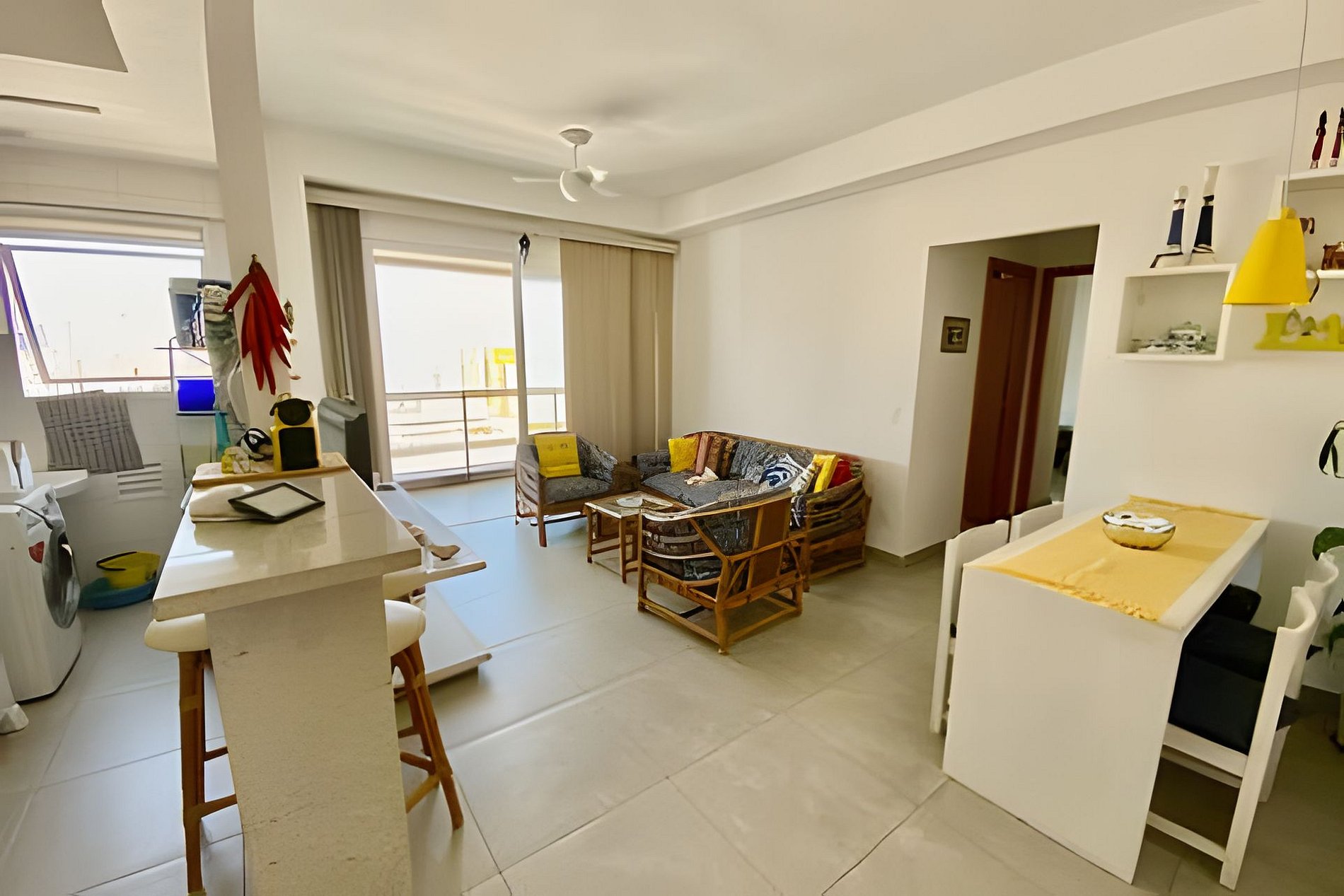O condomínio tem portaria 24h, Wi-Fi rápido e roupas de cama e banho inclusas (toalhas de praia não fornecidas). O apartamento acomoda até 4 pessoas em camas e 1 no colchão extra.