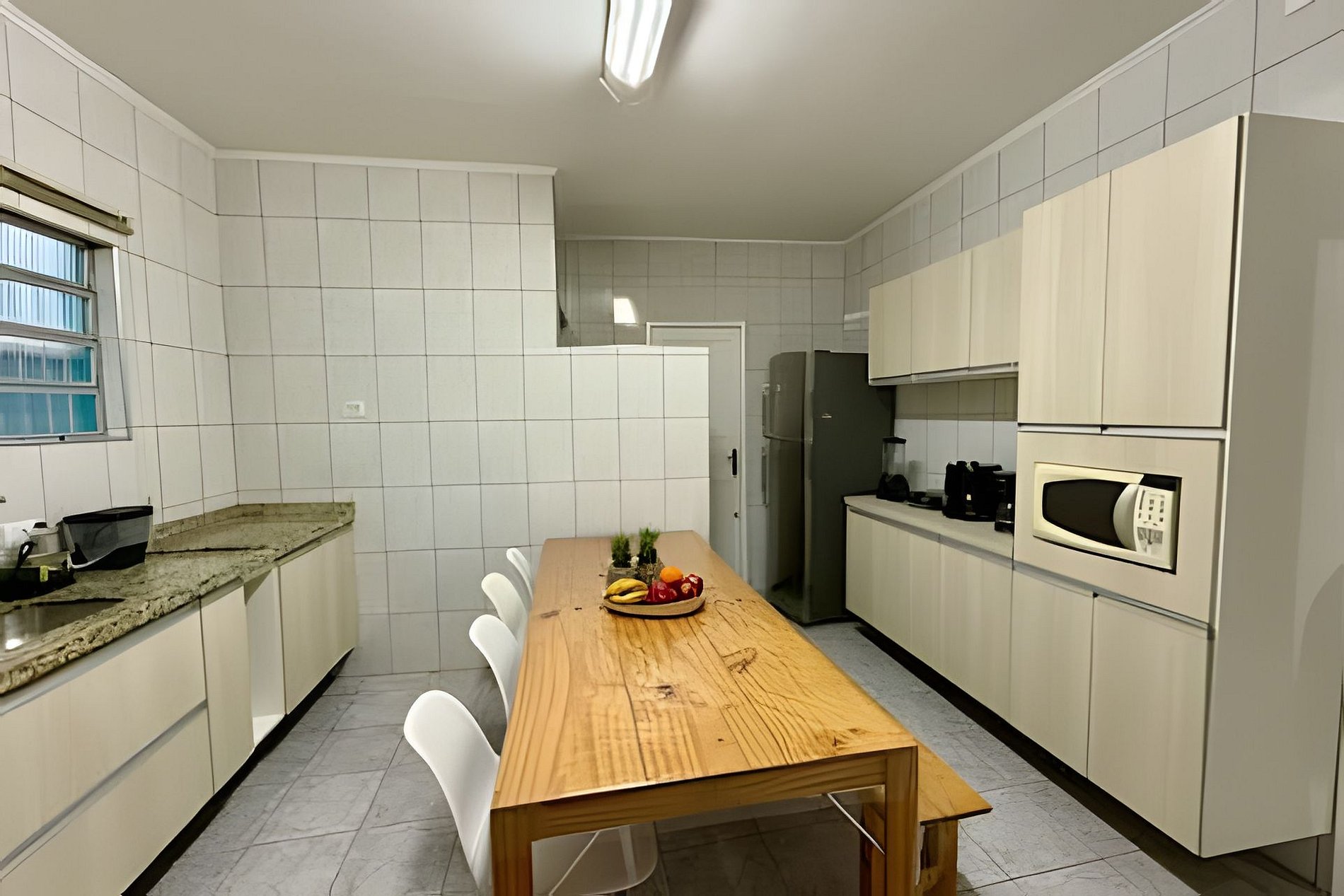 Os ambientes internos são amplos e bem distribuídos. A sala é aconchegante, ideal para relaxar após um dia de passeios ou praia. A cozinha é totalmente equipada com micro-ondas, torradeira, liquidificador e utensílios básicos, facilitando o preparo de refeições para o grupo.