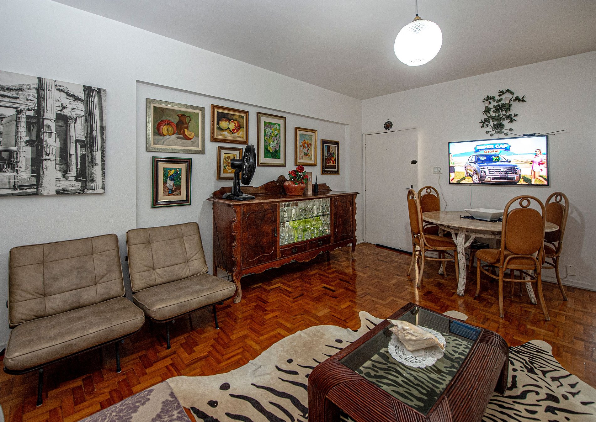 A Super Host Brasil apresenta este confortável apartamento a poucos passos da Praia do Gonzaga! Acomoda até 6 hóspedes (incluindo crianças) com praticidade. Possui 2 quartos com cama de casal e solteiro, sendo um deles suíte com ar-condicionado. A sala oferece TV Smart 50", sofá aconchegante e ventilador de teto. Conta com 2 banheiros completos, cozinha equipada com micro-ondas, torradeira, liquidificador e utensílios.